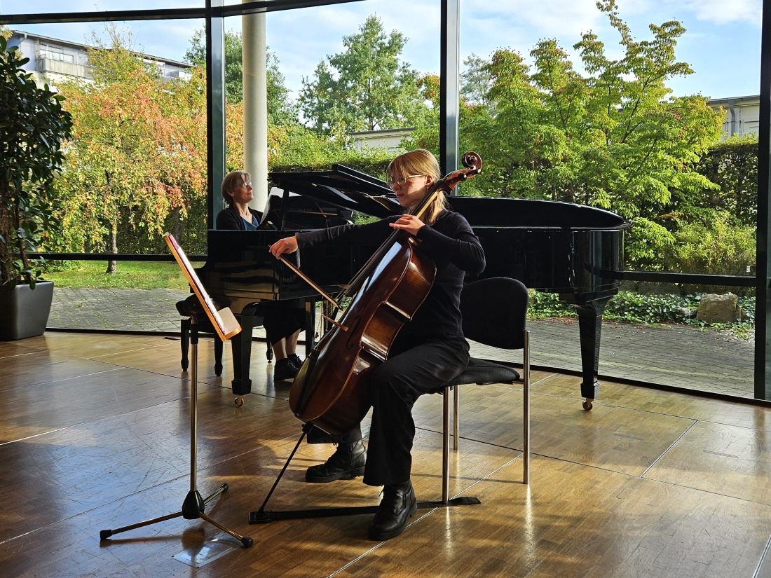 Zehn unserer begabtesten und leistungsbereitesten Schüler haben am vergangenen Sonntag das Publikum mit einem abwechslungsreichen und anspruchsvollen Konzert begeistert. Zu hören waren unsere jungen Musiker mit Violine, Klavier, Violoncello, klassischer Gitarre, Querflöte, Akkordeon und Trompete. Das Programm reichte u.a. von Johann Sebastian Bach über Franz Schubert, Sergej Rachmaninoff, Wladislaw Solotarjow bis hin zu Pam Wedgwood und war damit so farbenreich wie der Herbst selbst. Der Festsaal der sächsische Landesärztekammer und deren Hauspersonal boten dem jährlichen Konzert, wie immer, einen würdigen Rahmen und den Kindern und Jugendlichen ein professionelles Umfeld!