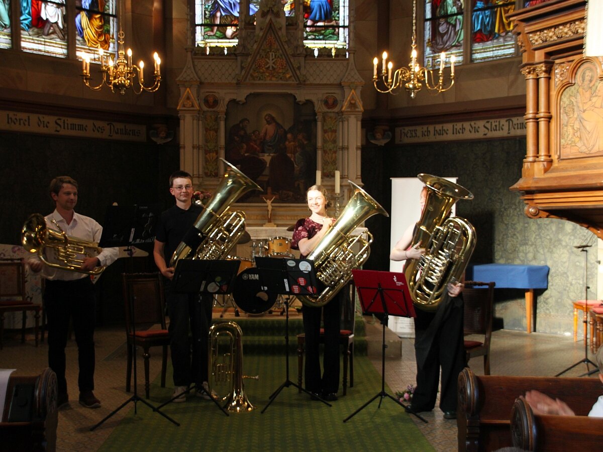Ein besonderer Moment war die Verabschiedung mehrerer langjähriger Mitglieder des Blechbläserensembles, die nach vielen Jahren an der Musikschule nun einen neuen Lebensabschnitt beginnen. Mit persönlichen Worten und einem kleinen Geschenk bedankte sich ihr Lehrer Herr Swaboda für das langjährige Engagement und die Treue zur Musikschule.