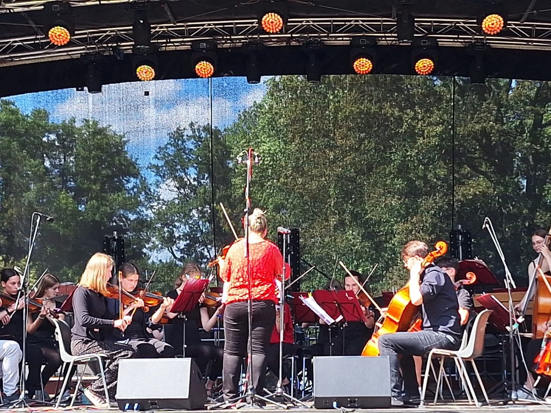 Am ersten Ferienwochenende, dem 22. und 23. Juni 2024, präsentierten sich die beiden Streichorchester wieder im Stadtpark Großenhain. Am Samstag erklang auf der Hauptbühne ein einstündiges buntes Programm aus Film-, Rundfunk- und Musicalmelodien mit dem Streichorchester „Saitensprung“. Das Nachwuchsstreichorchester „Die Großenhainer Anstreicher“ unternahm am Sonntag eine 40-minütige musikalische Reise durch verschiedene Länder. Es gab viel Applaus und ein herzliches Dankeschön an alle Mitwirkenden und unterstützenden Eltern!