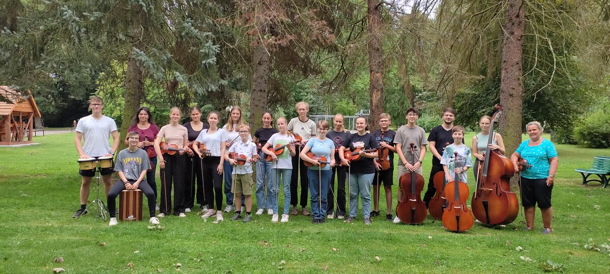 Das Streichorchester „Saitensprung“ Großenhain war am 26. und 27.8.2023 im Probenlager im Schullandheim Täubertsmühle. Nach mehreren Abgängen (Abschluss 10.Klasse, Abitur) konnten zwei neue Schüler im Ensemble begrüßt werden und es wurden Stücke, die am 9.9.2023 beim gemeinsamen Konzert mit der Singgemeinschaft Großenhain e.V. gespielt wurden, wiederholt. Zusätzlich begannen die ersten Proben – teilweise auch nach Stimmgruppen getrennt – für die diesjährigen Adventskonzerte. Natürlich kam auch die Geselligkeit und das bessere Kennenlernen nicht zu kurz, so z.B. beim gemeinsamen Tischtennis- und Volleyballspiel, beim Singen sowie beim Pizza-Essen.