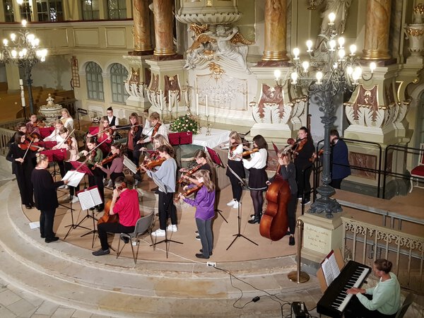 Am 18.September wurde die Großenhainer Kulturnacht begangen. Gleich vier Kurzkonzerte absolvierte dabei das Streichorchester Saitensprung, unter der Leitung von Carmen Likuski, in der Marienkirche in Großenhain. Der Klangkörper der Musikschule erfreute das Publikum dabei mit bekannten Melodien von Abba oder aus dem beliebten Musical-film „La la Land“. Einen recht herzlichen Dank unseren jungen Musikerinnen und Musikern, sowie der tatkräftigen Unterstützung von Eltern und Förderern, die zu dem guten Gelingen beigetragen haben.