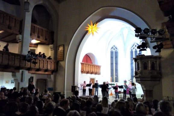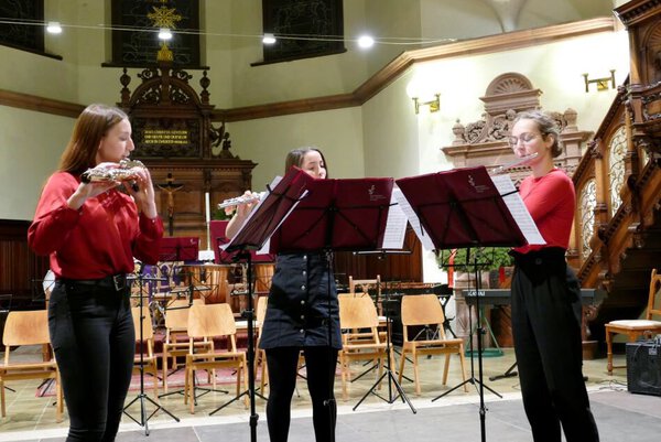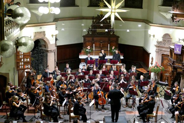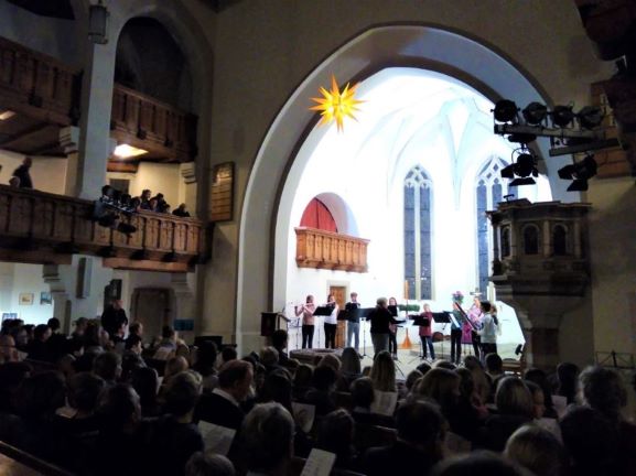 Zum traditionellen Familienweihnachtskonzert in der Friedenskirche haben verschiedene Ensembles wie Trompete und Orgel, Akkordeonquartett, Holzbläserensemble, die jüngsten Streichorchester oder der Grundschulchor ein kurzweiliges, fröhliches Programm gestaltet.