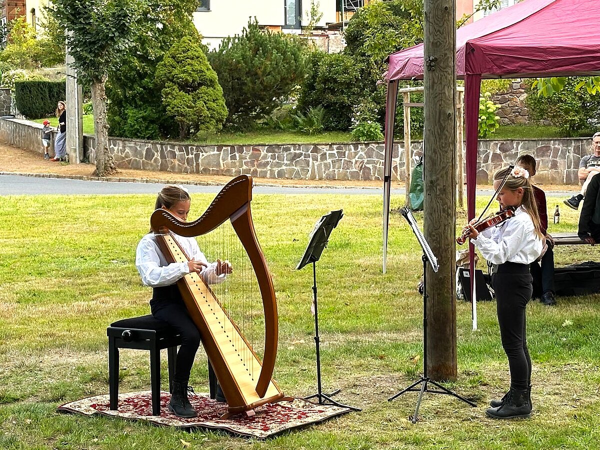 Am Nachmittag des 13.09. lud der Stadtteil Friedewald zu einem gemütlichen Fest am Schillerplatz ein. In das umfassende Kulturprogramm reihten sich auch einige spielfreudige Musikschüler ein. So erklangen barocke Werke im Duo mit Violine und Cello, Klavierstücke von Chopin bis J. Strauß, Geigenmusik mit Klavierbegleitung und der wunderbare Klang einer Harfe, sowohl solistisch als auch im Zusammenspiel mit der Geige. Es war beeindruckend, mit welcher Vielfalt sich die jungen Musiker hier präsentiert haben!