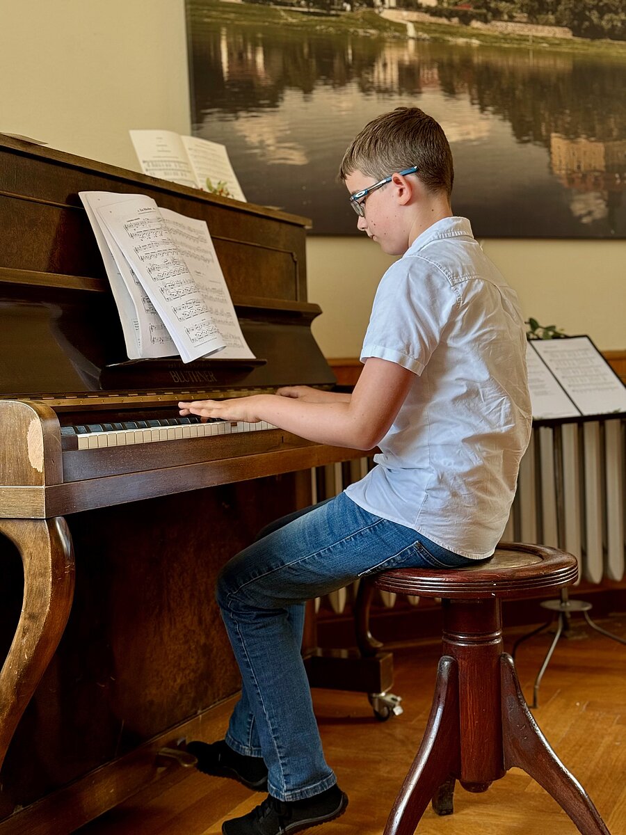 Am vergangenen Samstag, den 13.09., gab es auf dem Schloss Hirschstein einen Familien-Aktionstag, der vom Heimat- und Förderverein Hirschstein e.V. organisiert wurde. Der Titel der Veranstaltung lautete „Schlossgespenst Siwa spukt durch die Zeit“. Die Veranstalter freuten sich über zahlreiche Besucher, darunter viele Familien, die u. a. die einzigartige geheimnisvolle Stimmung des alten Schlosses genießen wollten. Neben verschiedenen Attraktionen war auch unsere Musikschule mit einer Präsentation der elementaren Musikpädagogik und einem kleinen Vorspiel von Gitarren- und Klavierschülern von Herrn Groß und Herrn Michalski zu Gast.
